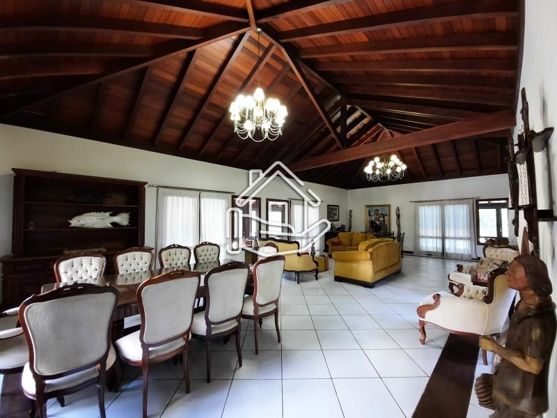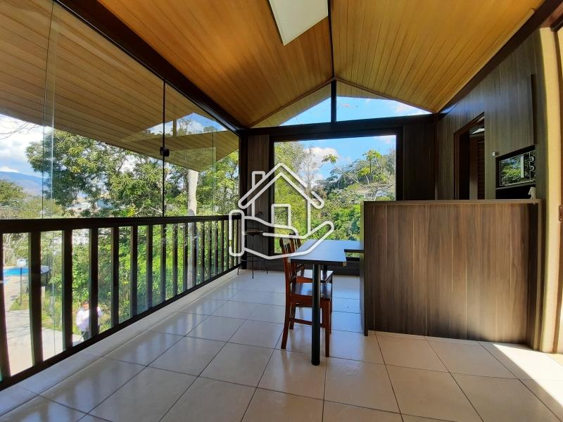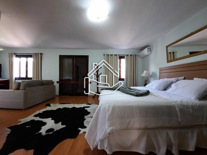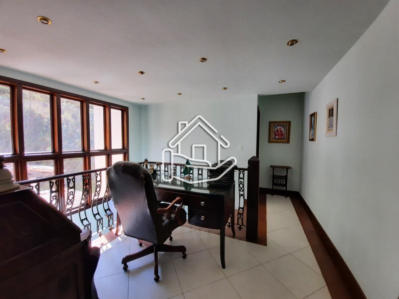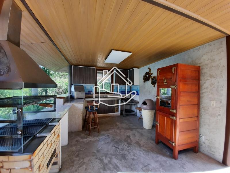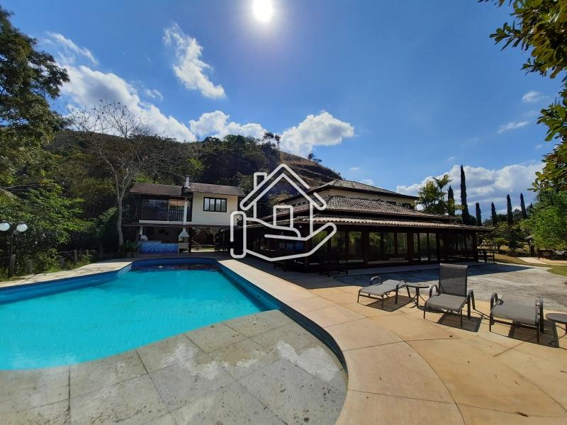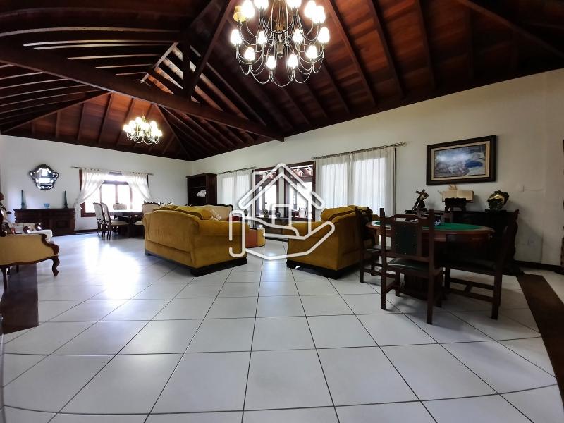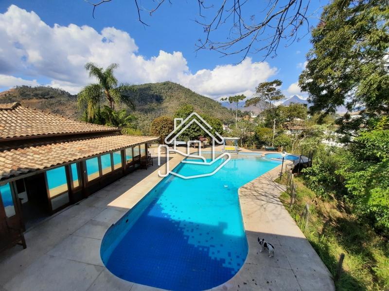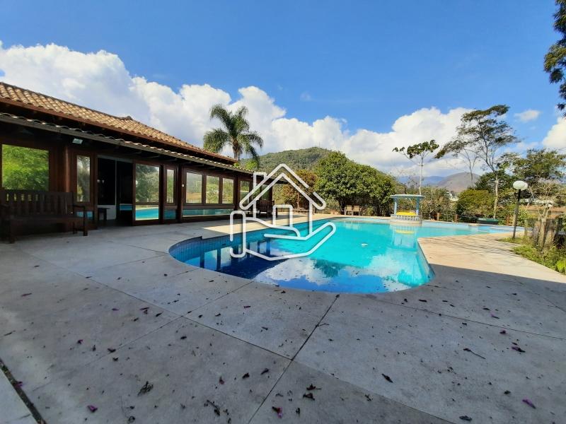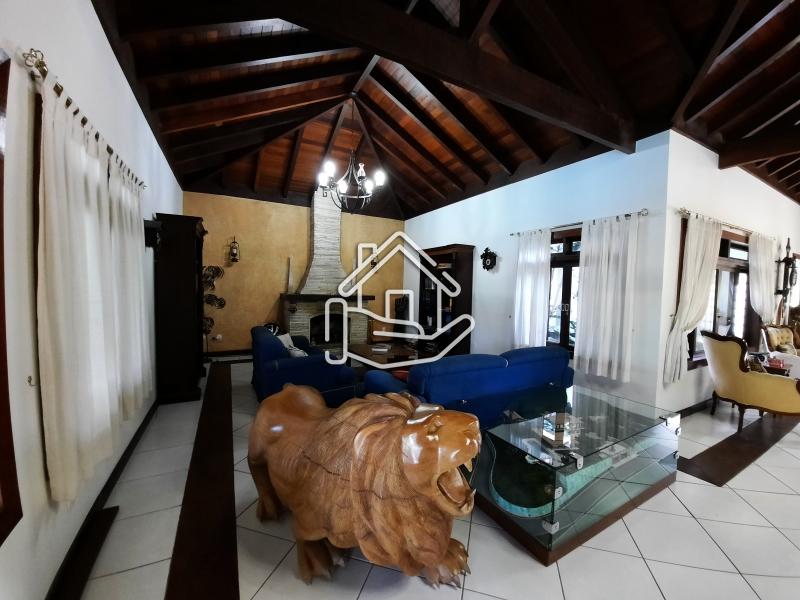 Excelente casa localizada em condomínio central de Itaipava com 10.000 m² de terreno e aproximadamente 800 m² de área construída. Casa construída em dois pavimentos com acabamento de primeira, composta por sala em vários ambientes, lareira, bar, varanda fechada, sala de TV, sala de estar com lareira, sala de jantar e de estar, suíte, lavabo, cozinha com armários e dependência de empregado. Pavimento superior com 4 suítes com armários, ar condicionado, varanda e escritório. Parte externa com sala de jogos, espaço gourmet (churrasqueira, forno de pizza e fogão industrial), piscina com cascata, apartamento de hospedes. .