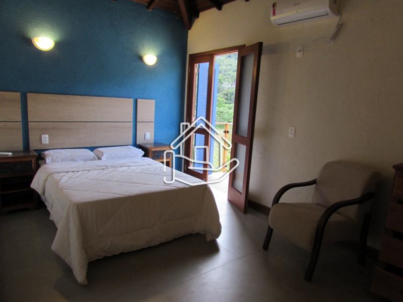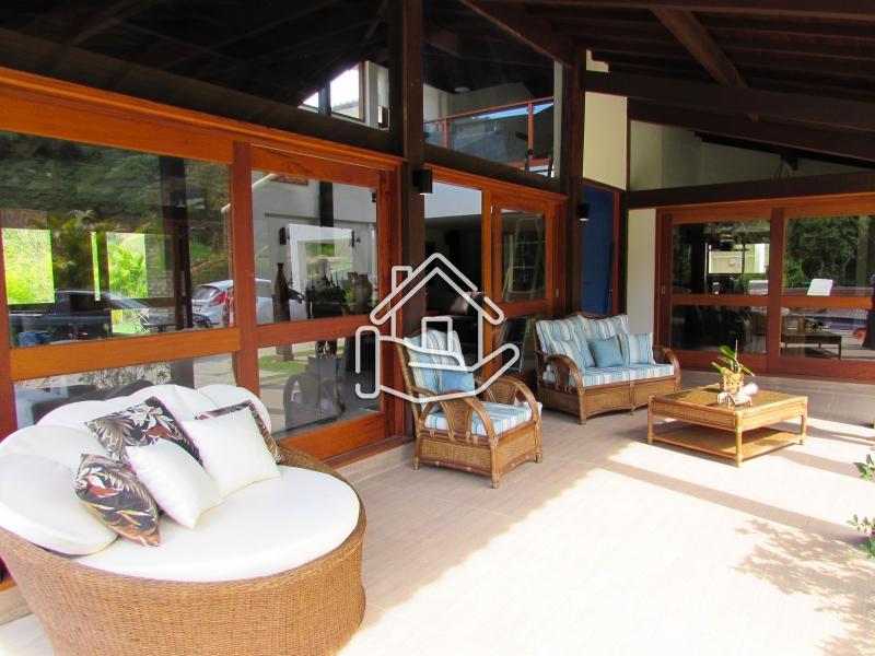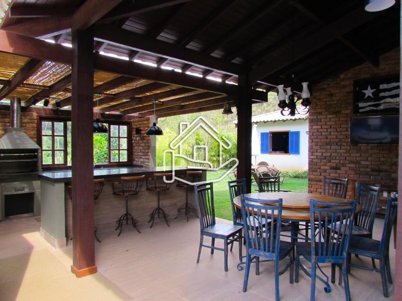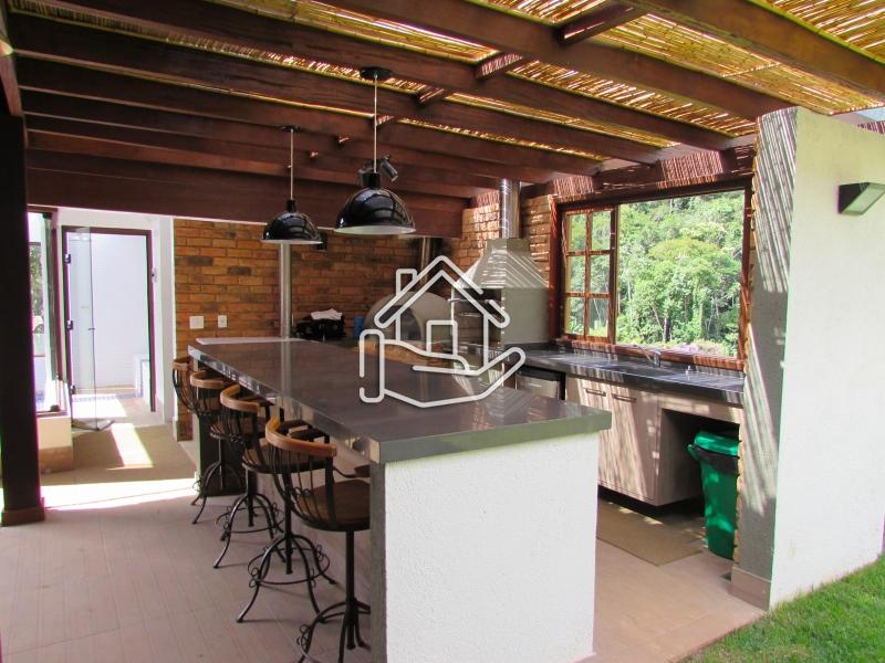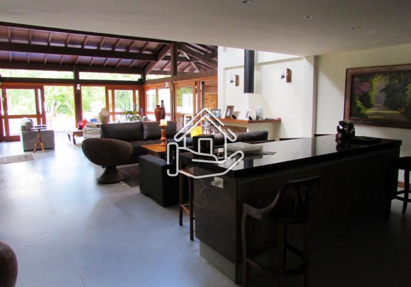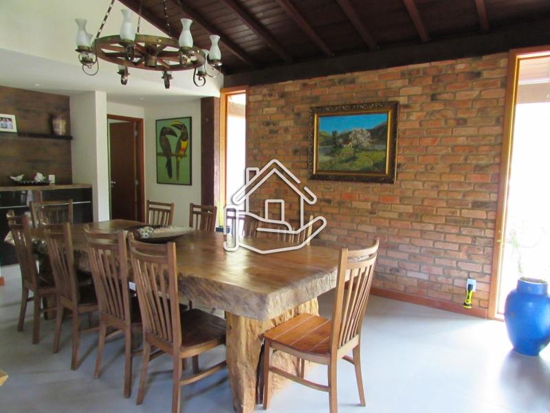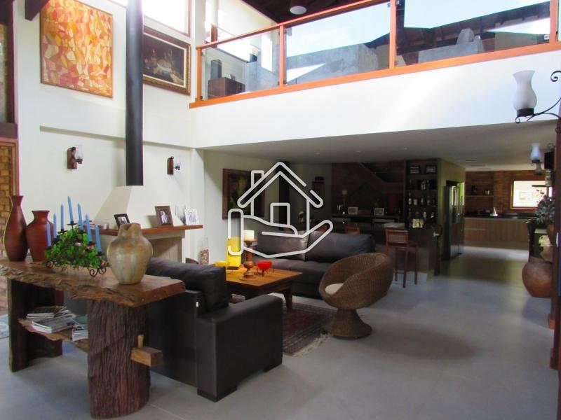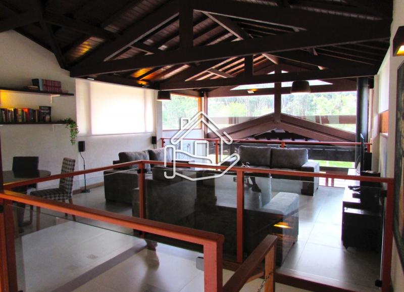 Excelente terreno de 3.206m² em aclive com 600m² de área construída. Casa recém construída em dois pavimentos com varanda gourmet com TV, forno de pizza, churrasqueira, lavabo, ducha, sauna a vapor com ducha integrada e acesso para piscina; sala em vários ambientes com pé direito duplo, som ambiente em toda casa, lareira, sala de jantar, bar, lavabo, 2 suítes com split, varanda (sendo 1 suíte com closet e