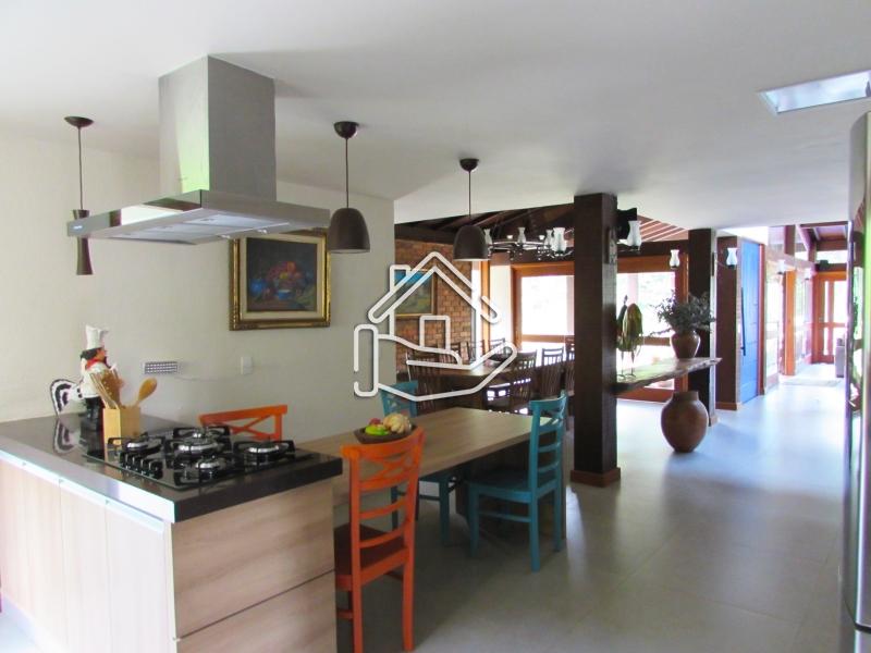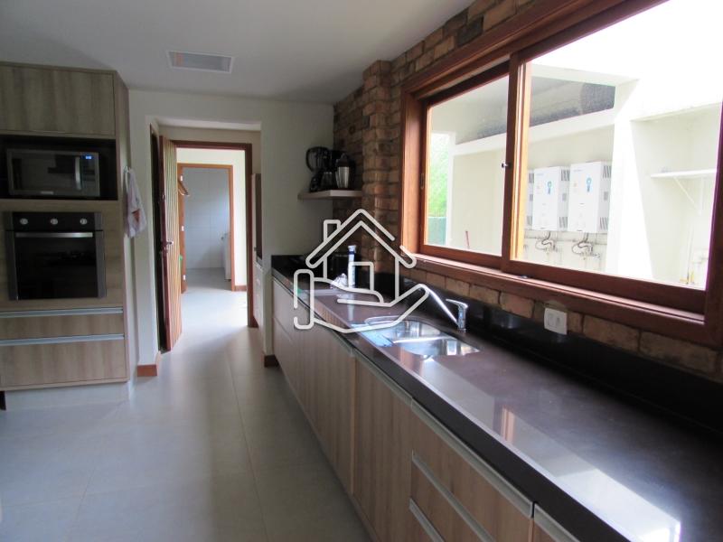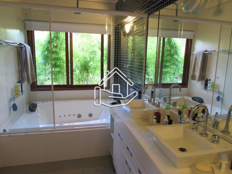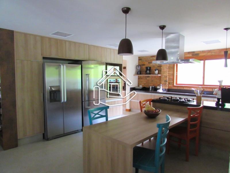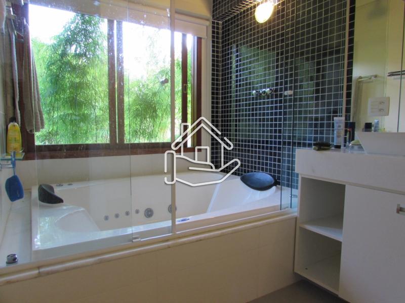 hidromassagem), cozinha com cooktop, coifa, pia com cuba dupla, bancada em mármore, despensa, dependência de empregada e área de serviço toda azulejada com armários. Pavimento superior com sala de TV, acesso para quadra de futevôlei, 4 suítes com split e varanda. Projeto paisagístico da Arteiro com diversos jardins e plantas nobres, pomar com 50 árvores, área esportiva com quadra poliesportiva de areia lavada e peneirada, com 100 m². Mobília da Todeschini (cozinha, churrasqueira e armários), e móveis da Bellagio. Garagem para 2 carros..