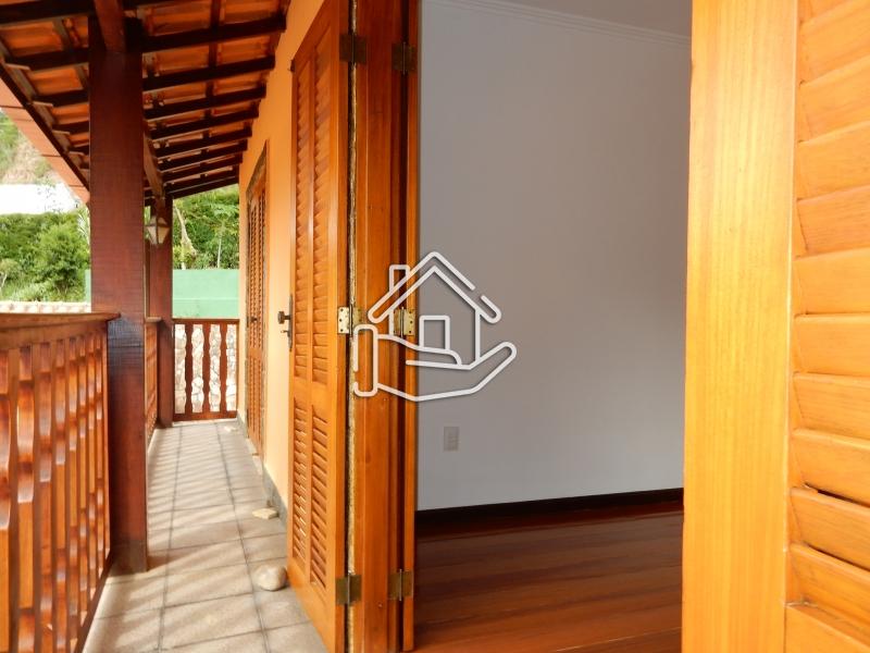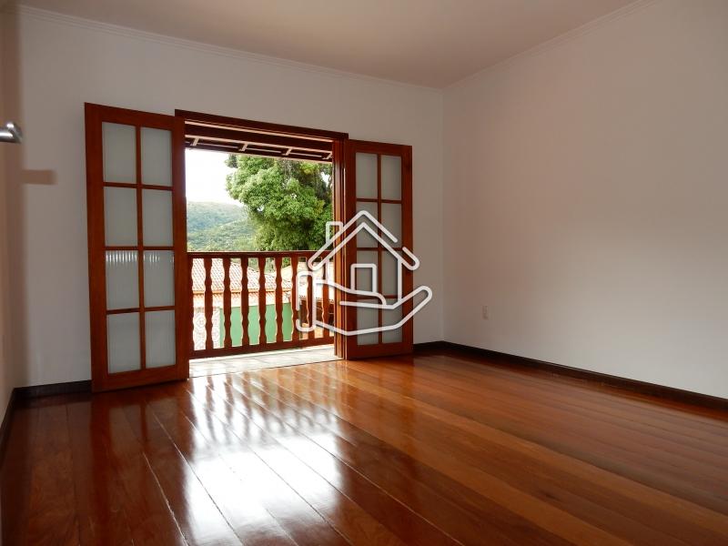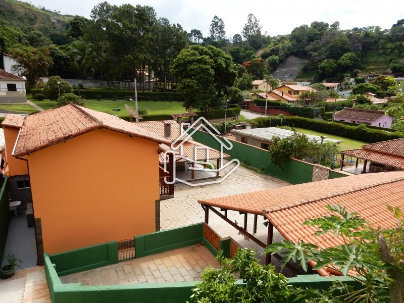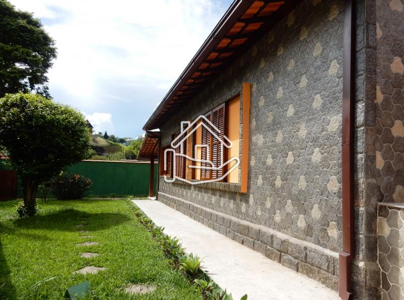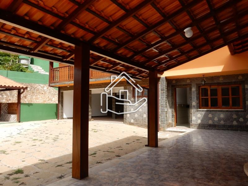 Terreno de 840m² e 242m² de área construída. Casa nova em 2 pavimentos. 1º pav.: Com sala com lareira; varanda; 2 quartos (sendo 1 suíte), banheiro social; cozinha c/ copa e área de serviço. 2º pav.: banheiro e 3 quartos (sendo 2 com sacada). Garagem coberta de 70m², para 4 carros, com churrasqueira; banheiro e quarto de empregada. Água da mina..