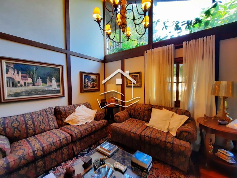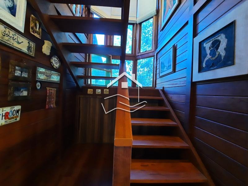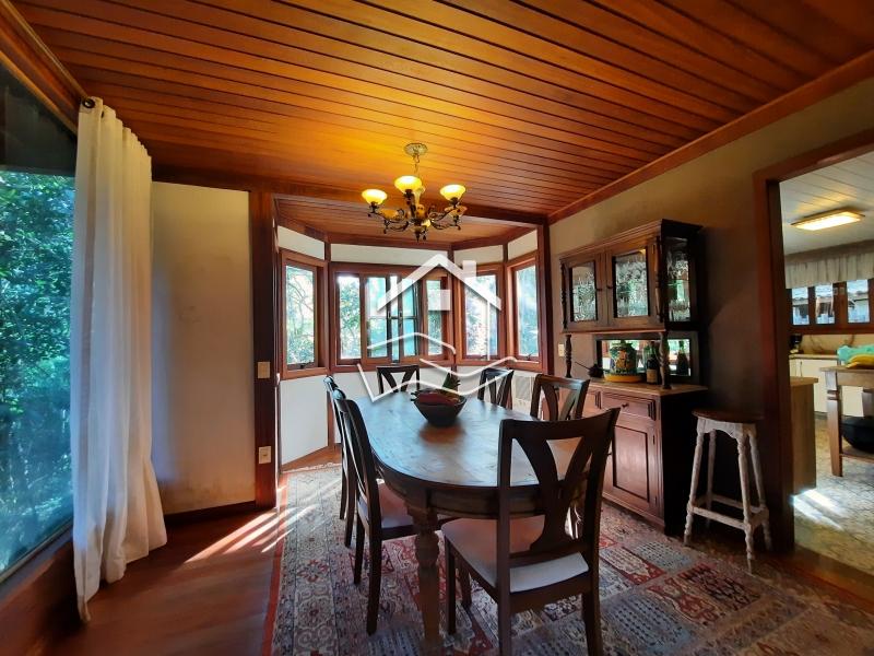 Terreno de 2.200m² em suave declive e aproximadamente 280m² de área construída. Casa construída em madeira e alvenaria em dois pavimentos, sendo o pavimento de entrada com uma ampla varanda, sala em dois ambientes c/ lareira, lavabo, 1 quarto(podendo ser usado como escritório) sala de jantar, cozinha c/ armários, área de serviço c/ banheiro de empregada. Pavimento superior sala TV, 2 suítes c/ varanda ( sendo 1 c/ closet/escritório) Garagem coberta para 2 carros, estacionamento, academia, gerador com autonomia para +/- 8 horas mantem a casa toda e o ar condicionado da suíte principal.