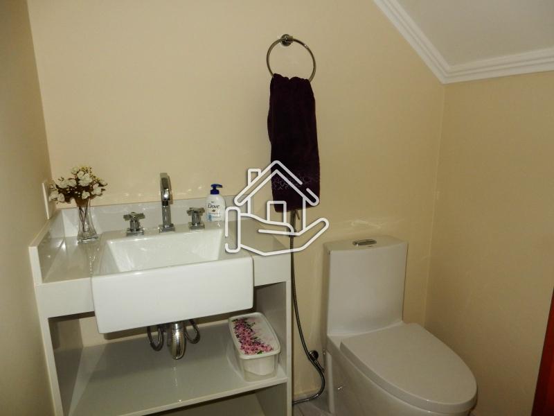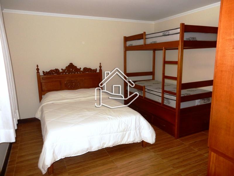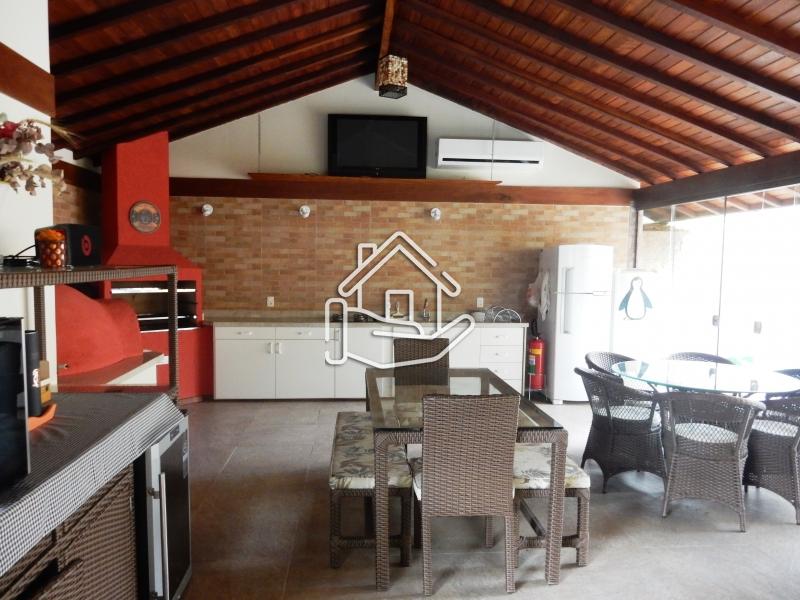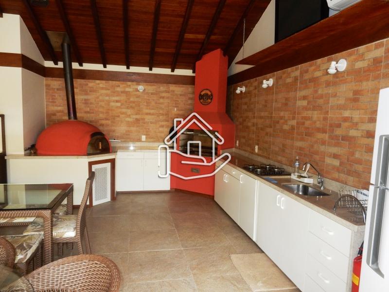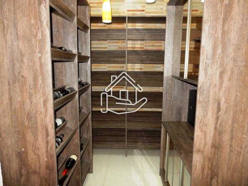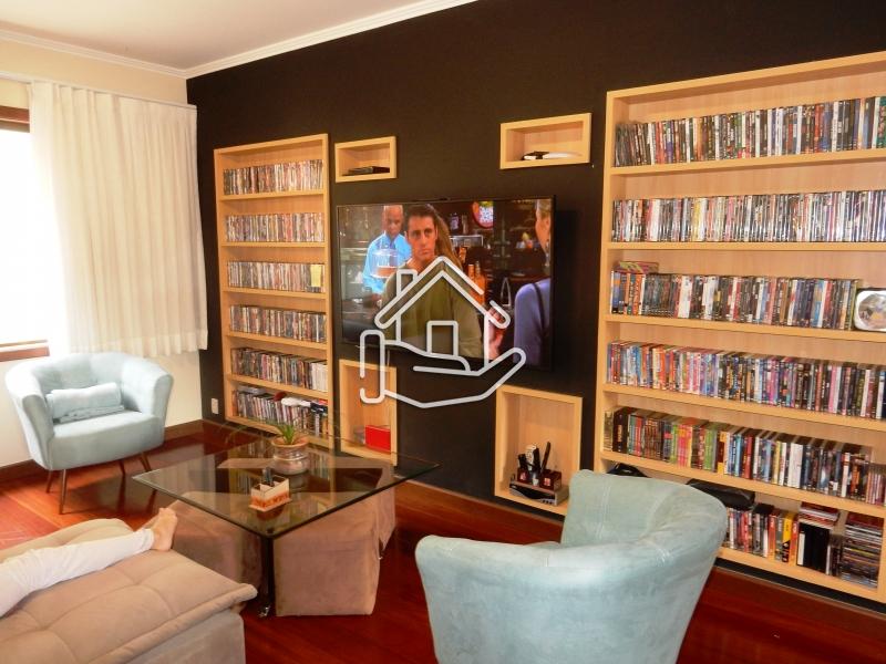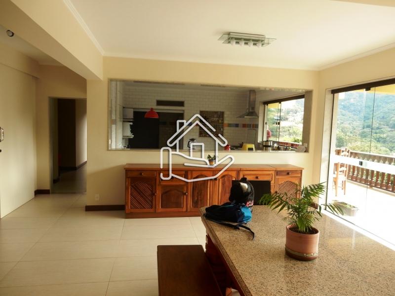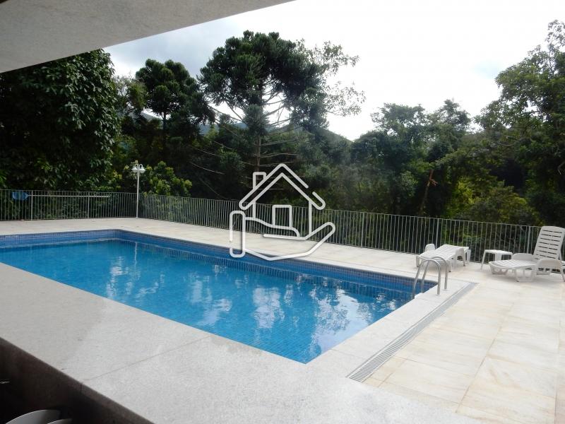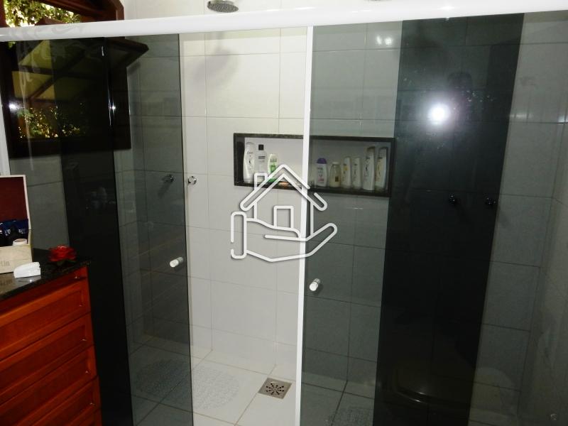 Terreno de 5.000 m² em suave declive e 860 m² de área construída. Casa construída em três pavimento sendo o pavimento de entrada com lavabo, varandão, adega, 2 banheiros sociais, escritório, 2 quartos com split quente/frio, cozinha com armários, despensa, sala TV com piso em tábua corrida e sala de jantar com lareira. Pavimento superior com piso todo em tábua corrida, mezanino, 4 suítes c/ armários (sendo 2 com varanda e split