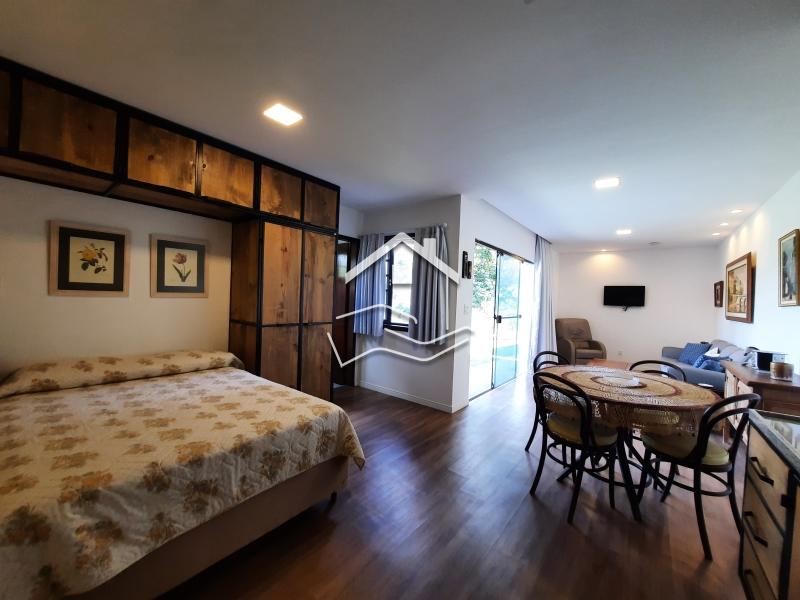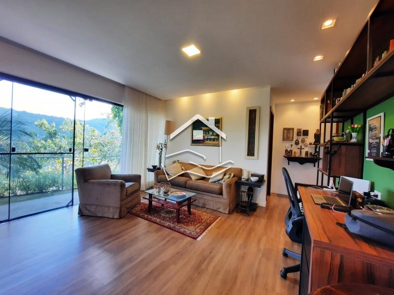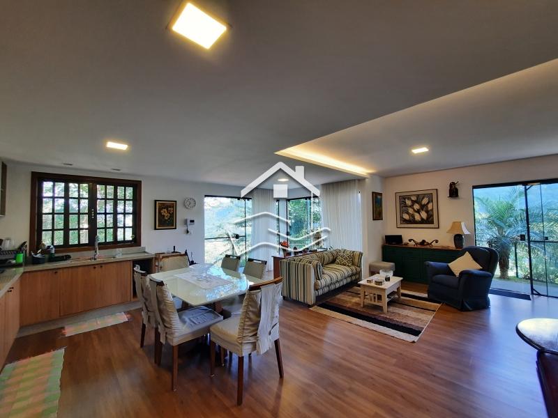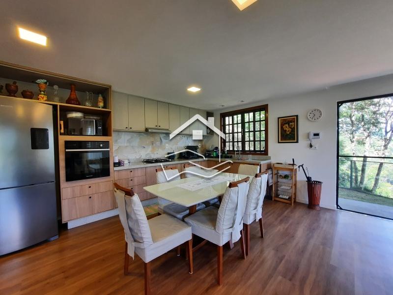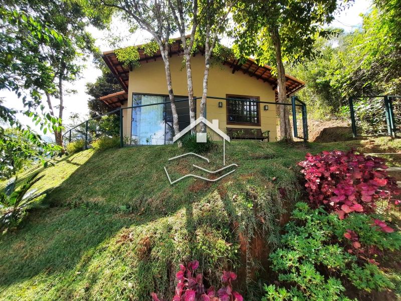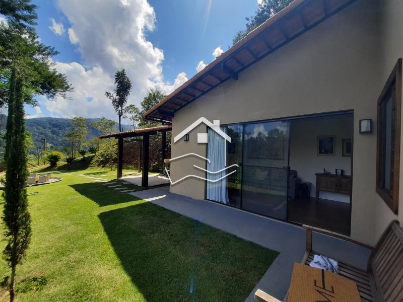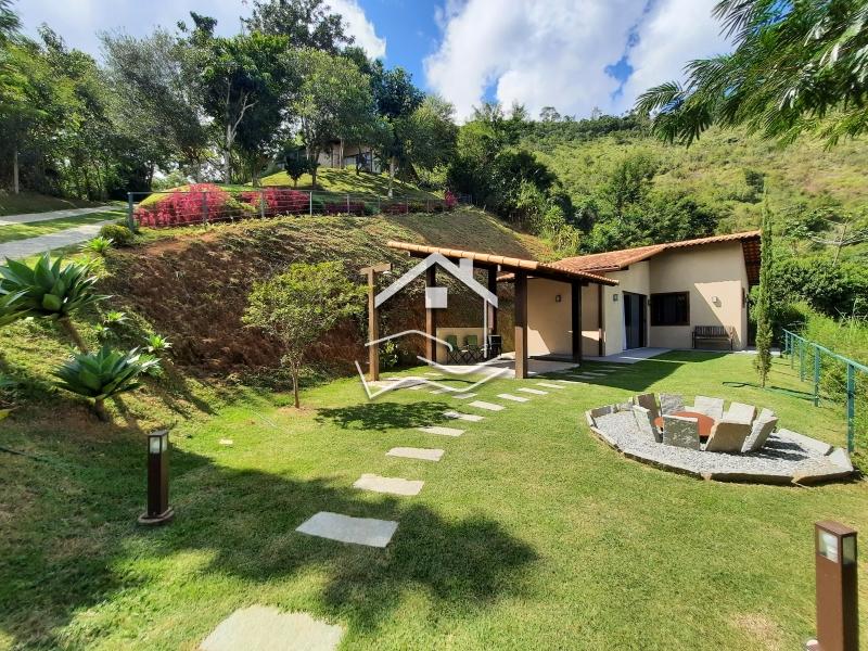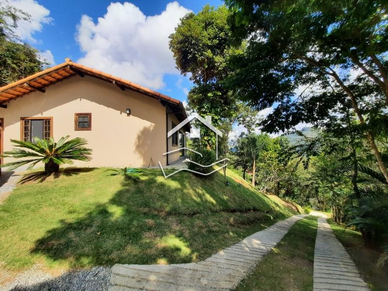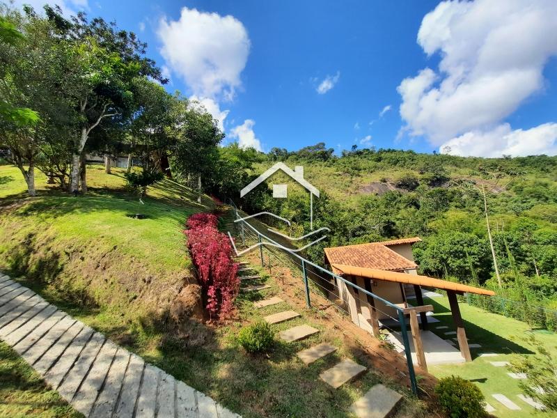 Terreno de 2.200m² em aclive com 147m² de área construída. O terreno esta com paisagismo em volta, iluminação e possui duas construções. Casa principal linear de 112m² com varanda em volta, sala ampla com cozinha em conceito aberto, 2 quartos (sendo 1 suíte) banheiro social, rouparia, lavanderia, com banheiro de empregada. Possui uma suíte externa de 35m² com sala íntima e copa. ESTUDA PERMUTA .